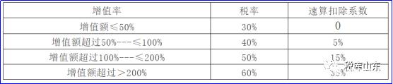 问题四,土地增值税的计算公式是多少? 答复: 应交土地增值税=增值额×税率-扣除项目金额×速算扣除系数 一般我们在实际工作中都会采用速算扣除法进行计算,具体如下: 1、需要扣除的增值额没有超过扣除项目金额的50%,计算公式如下: 土地增值税税额=增值额×30% 2、需要扣除的增值税额超过扣除项目金额的50%,但是没有超过100%的计算公式如下: 土地增值税税额=增值额×40%-扣除项目金额×5% 3、需要扣除的增值额超过扣除项目金额的100%,但没有超过200%的计算公式如下: 土地增值税税额=增值额×50%-扣除项目金额×15% 4、需要扣除的增值额超过扣除项目金额200%的计算公式如下: 土地增值税税额=增值额×60%-扣除项目金额×35% 公式中的5%、15%、35%分别为二、三、四级的速算扣除系数。 房地产企业土增税基本计算步骤如下: ① 先计算可以扣除项目金额(包括土地成本、建造成本、税金、开发费用及利息、加计扣除等) ② 计算收入 ③ 收入-扣除项目金额=增值额 ④ 增值额/扣除项目金额=增值率 ⑤ 按税率计算税额 问题五,土地增值税在计算的时候,扣除项目包括哪些? 答复: (1)取得土地使用权所支付的金额; (2)开发土地的成本、费用; (3)新建房及配套设施的成本、费用,或者旧房及建筑物的评估价格; (4)与转让房地产有关的税金; (5)财政部规定的其他扣除项目。 问题六,能否举个案例说明一下土地增值税的计算? 答复: 比如甲企业账面上有套办公房成本2000万,想卖掉8000万,计算一下土地增值税?假设不考虑别的扣除项目。 土地增值税 = (8000-2000) ×60% -2000×35% =2900万元