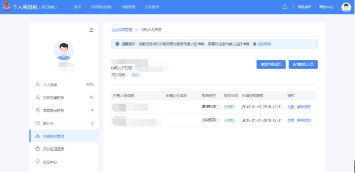 2.APPWEB端获取和重置需由扣缴单位法定代表人和财务负责人办理。